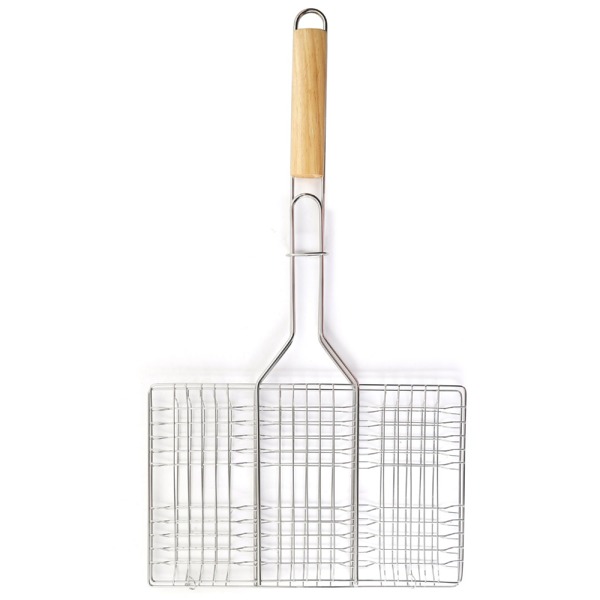 Objavte univerzálny grilovací kôš, ktorý posunie vaše grilovanie na vyššiu úroveň! Tento robustný kôš je vyrobený z odolnej nehrdzavejúcej ocele pre dlhú životnosť a jednoduché čistenie. Drevená rukoväť sa pohodlne drží a chráni vaše ruky pred teplom. Vďaka dômyselnému systému mriežok zostanú vaše potraviny pevne na mieste a neprepadnú cez oheň, či už grilujete ryby, mäso, morské plody alebo zeleninu.