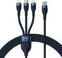 USB kábel 3 v 1 Baseus Flash Series 2, USB-C + micro USB + Lightning, 100 W, 1,5 m (modrý)