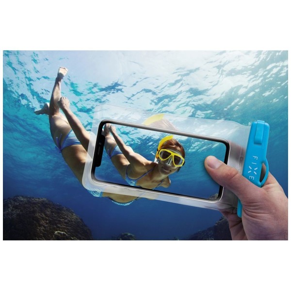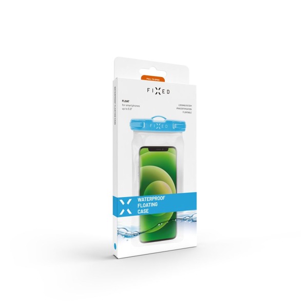 Vodotesné plávajúce puzdro na mobilný telefón FIXED Float s kvalitným uzamykacím systémom a certifikáciou IPX8, modré