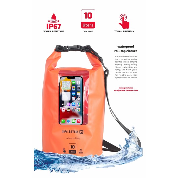 Najväčšie vodotesné puzdro z radu Swissten s objemom 10 l ponúka dostatok priestoru nielen pre váš smartfón a cenné veci, ako je peňaženka, doklady, kľúče, ale aj pre náhradné oblečenie a občerstvenie.
