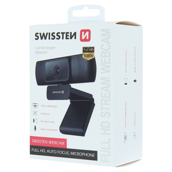 Webová kamera SWISSTEN FHD 1080P má automatické zaostrovanie, kvalitu obrazu Full HD a je podporovaná operačnými systémami Windows, OS X/ MAC OS a ďalšími. Balená v blistrovom balení SWISSTEN