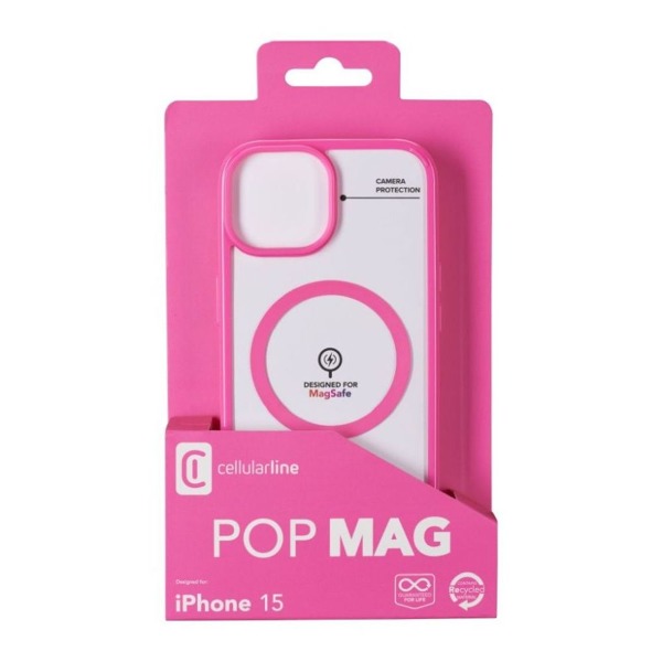 Zadný kryt Cellularline Pop Mag s podporou MagSafe je vyrobený z kombinácie tvrdeného polykarbonátu a mäkkého TPU. Ľahko sa nasadzuje a dokonale kombinuje ochranu pred nárazmi, pádmi a poškriabaním. Priehľadnú zadnú stranu krytu dopĺňa farebný rámik a krúžok MagSafe, vďaka čomu telefón získa pôsobivý vzhľad. Vďaka integrovaným magnetom kryt dokonale spolupracuje so všetkým príslušenstvom MagSafe. Bezdrôtové nabíjanie je tak jednoduchšie a efektívnejšie ako kedykoľvek predtým, stačí pripojiť nabíjačku MagSafe priamo ku krytu. Tento kryt je ideálnym príslušenstvom, ktoré dokonale chráni zadnú stranu a okraje, ako aj displej telefónu.