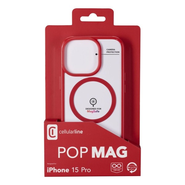 Zadný kryt Cellularline Pop Mag s podporou Magsafe pre Apple iPhone 15 Pro, číry / červený