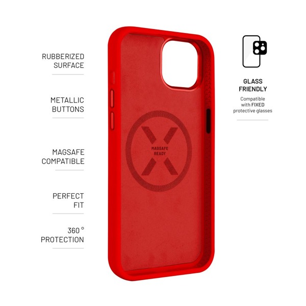 Zadný kryt FIXED MagFlow s podporou MagSafe pre Apple iPhone 15, červený