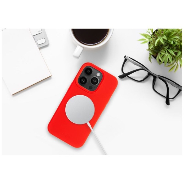 FIXED MagFlow s podporou MagSafe je tvrdený farebný kryt, ktorý spoľahlivo udrží váš mobilný telefón v bezpečí a navyše skvele vyzerá. Jeho povrch tvorí tekutý silikón - ľahký a zároveň odolný materiál, ktorý je v porovnaní s tradičnými silikónovými krytmi mäkký na dotyk, nekĺže a pohodlne sa drží v ruke. Z vnútornej strany chráni vložený telefón podšívka z mikrovlákna. Vďaka integrovaným magnetom kryt dokonale priľne k telefónu a perfektne funguje so všetkým príslušenstvom MagSafe. Bezdrôtové nabíjanie je tak jednoduchšie a efektívnejšie ako kedykoľvek predtým, stačí pripnúť nabíjačku MagSafe priamo na kryt. Telo krytu FIXED MagFlow je vystužené tvrdeným plášťom, a tak sa môže pochváliť vysokou odolnosťou voči rôznym pádom a nárazom. Mierne prekrývajúce sa okraje krytu chránia displej telefónu a objektív fotoaparátu pred poškriabaním, napríklad pri položení na stôl. Kryt FIXED MagFlow je navrhnutý presne na mieru modelu telefónu, dokonale sedí a myslí na kryty ovládacích tlačidiel a presné výrezy pre reproduktory, nabíjací konektor a fotoaparát.