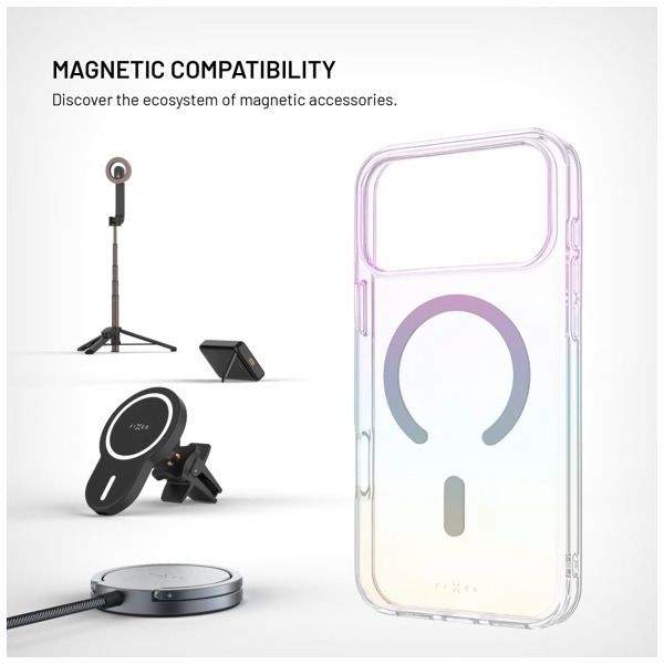 Ochranný kryt FIXED MagRainbow s podporou MagSafe spoľahlivo ochráni váš telefón pred všetkými nástrahami každodenného života. Zadná strana z tvrdeného polykarbonátu chráni pred poškriabaním, zatiaľ čo pružné boky z TPU tlmia nárazy a pády. Dizajn krytu dotvára jemný dúhový efekt, ktorý z každého telefónu okamžite urobí štýlový doplnok. Použitý materiál prirodzene odoláva žltnutiu a mierne vyvýšené okraje v oblasti fotoaparátu a displeja ich chránia pred kontaktom s povrchom a prípadným poškriabaním. Kryt je doplnený integrovanými magnetmi MagSafe, ktoré sa presne a stabilne pripevnia k nabíjačkám a ďalšiemu príslušenstvu MagSafe. Kryt FIXED MagRainbow kombinuje praktickú ochranu s jednoduchým dizajnom, ktorý dodá vášmu telefónu štýl.
