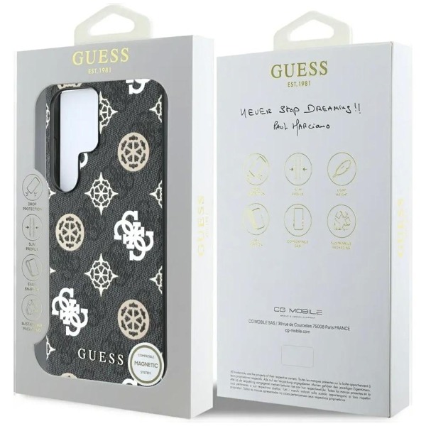 Krytoland pouzdra a kryty na mobil > Kryty a puzdrá na mobilné telefóny > Samsung > Séria Samsung Galaxy S > Samsung Galaxy S25 Ultra > Kryty > Zadný kryt Guess 4G Printed Colored Peony Pattern MagSafe pre Samsung Galaxy S25 Ultra - čierny