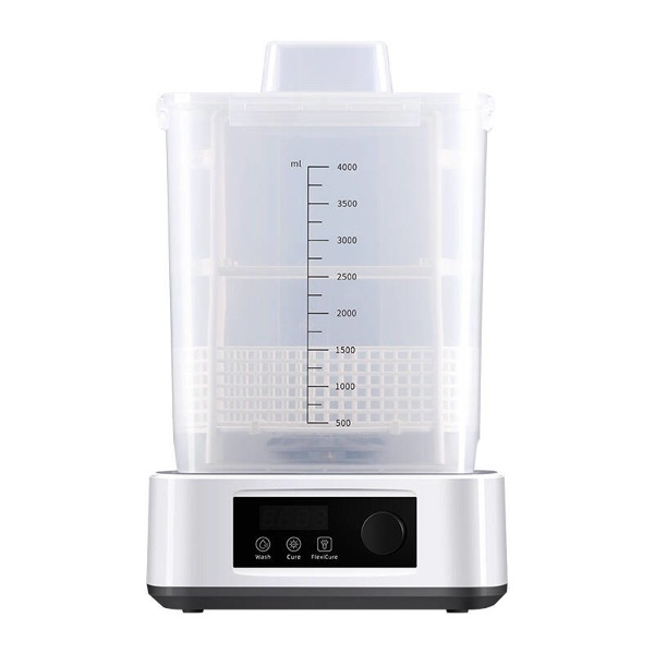 Objem koša zariadenia je 3 l a celková kapacita čistiaceho modulu je až 4 l. Vďaka tomu môžete ľahko čistiť výtlačky s rozmermi až 165 x 100 x 180 mm (v koši) alebo až 165 x 100 x 165 mm (na plošine). Rozmery vytvrdzovacej plochy sú 160 x 180 mm.
