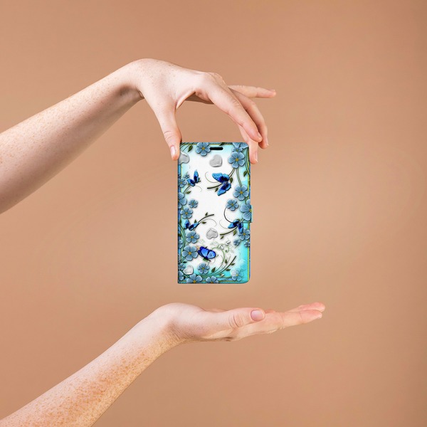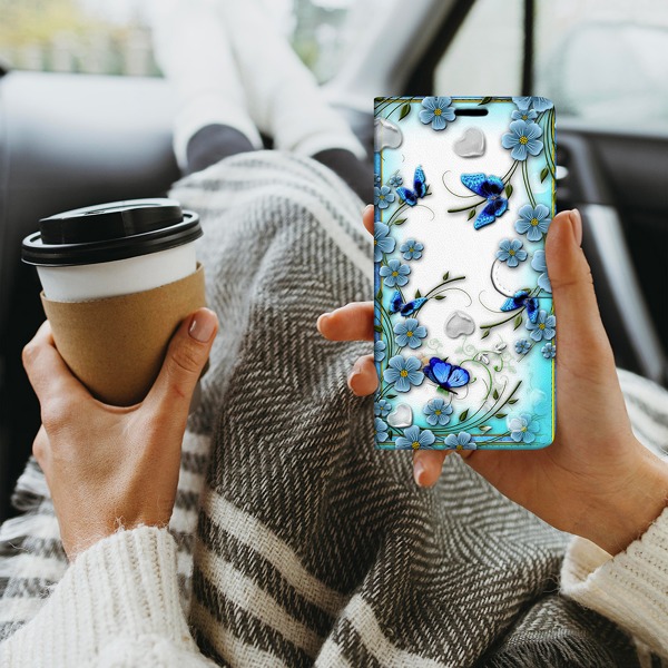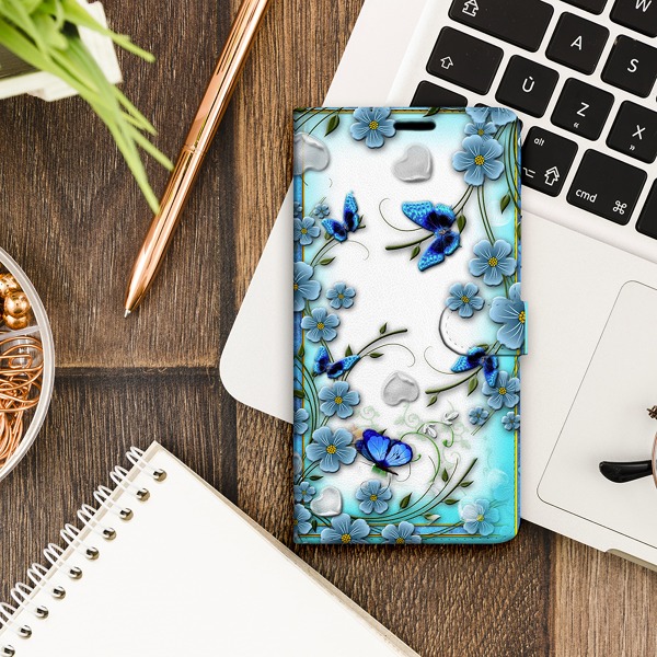 Krytoland pouzdra a kryty na mobil > Kryty a puzdrá na mobilné telefóny > iPhone > iPhone 12 Pro > Flipové / Knižkové puzdrá > Flipy dizajn > Biela > Zatváracie puzdro pre iPhone 12 Pro - Motýle s kvetmi a srdiečkami